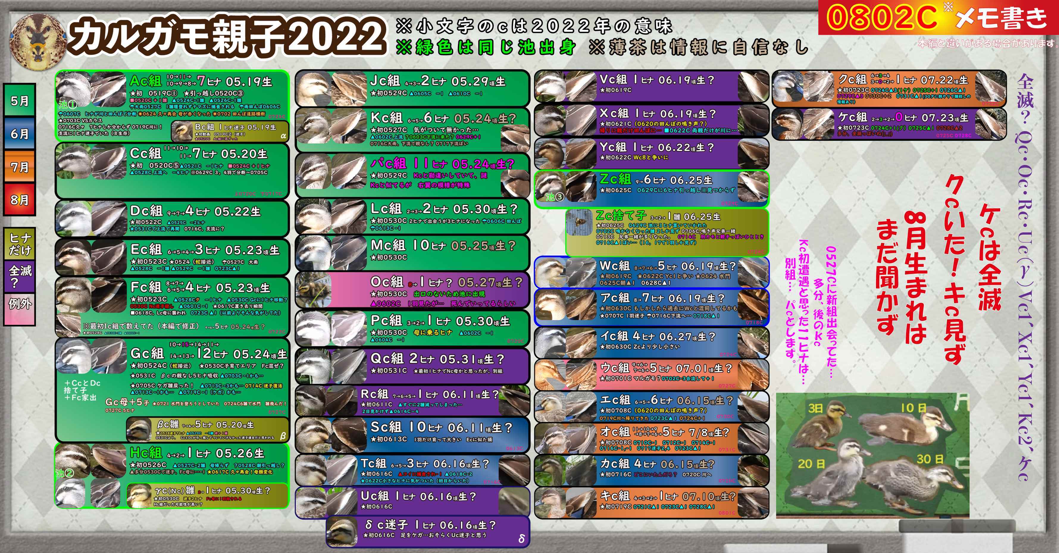 ▼まずはカルガモ親子の一覧表と、今日撮影した動画から▼