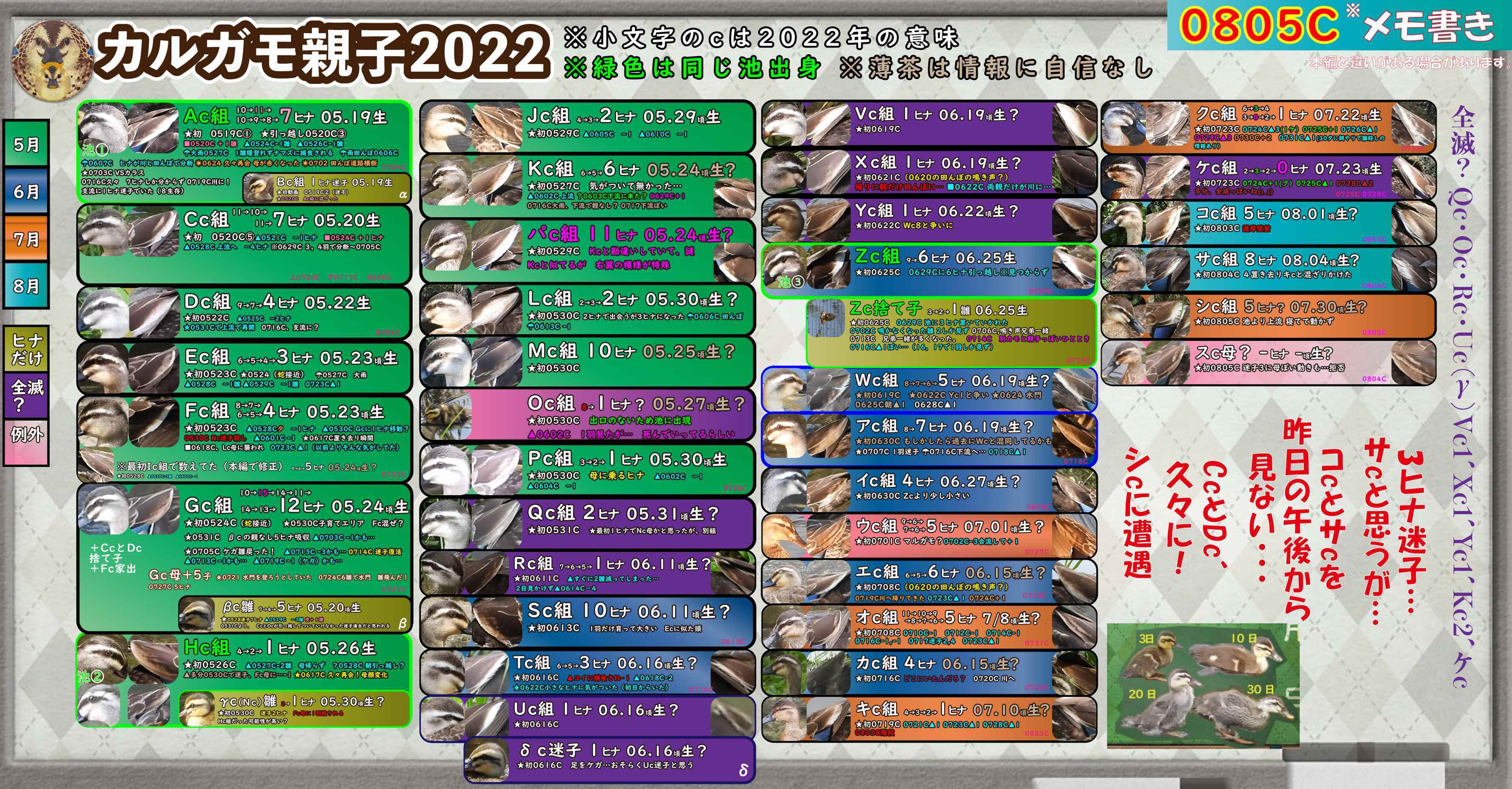▼まずはカルガモ親子の一覧表と、今日撮影した動画から▼