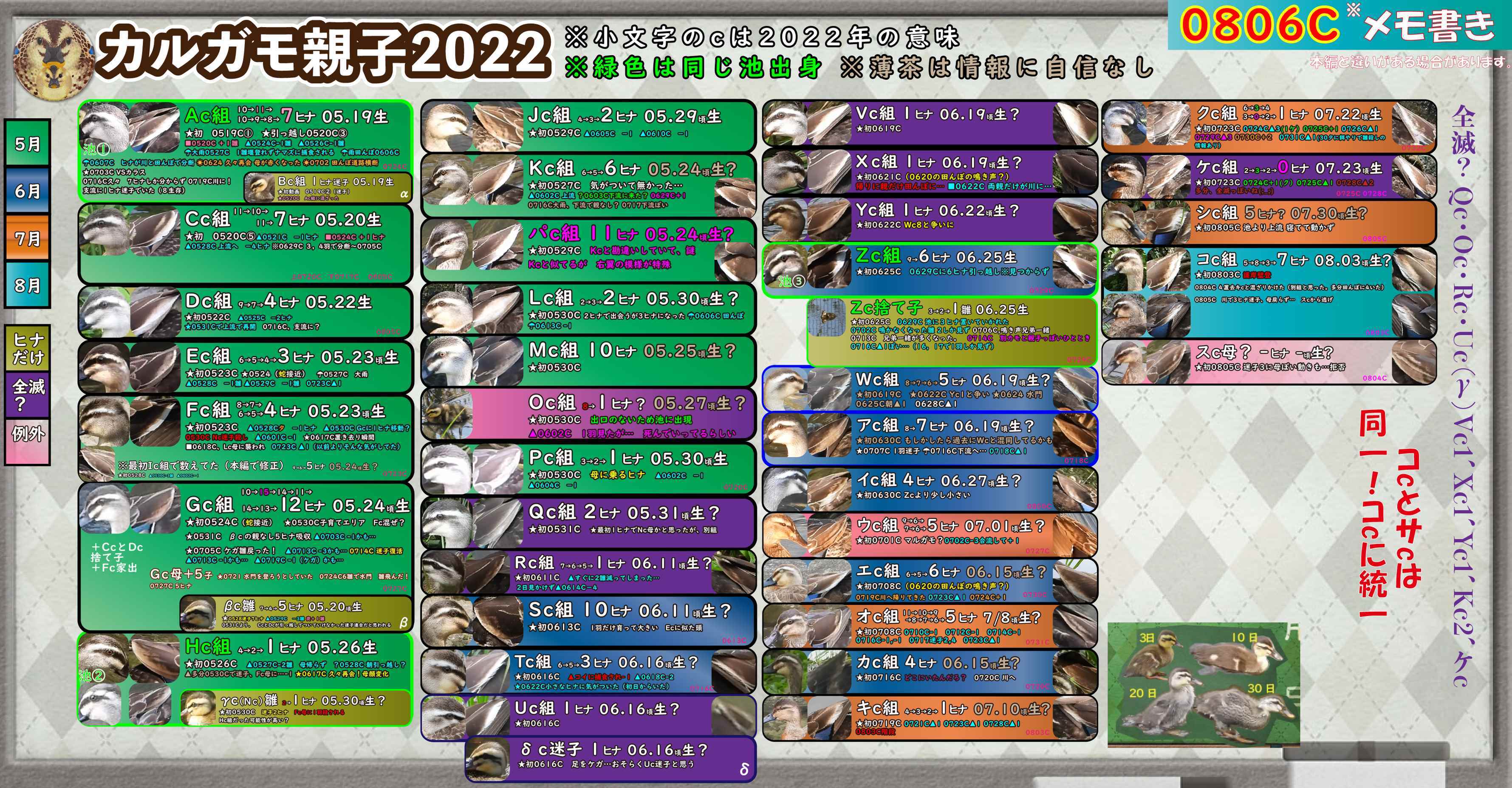 ▼まずはカルガモ親子の一覧表と、今日撮影した動画から▼