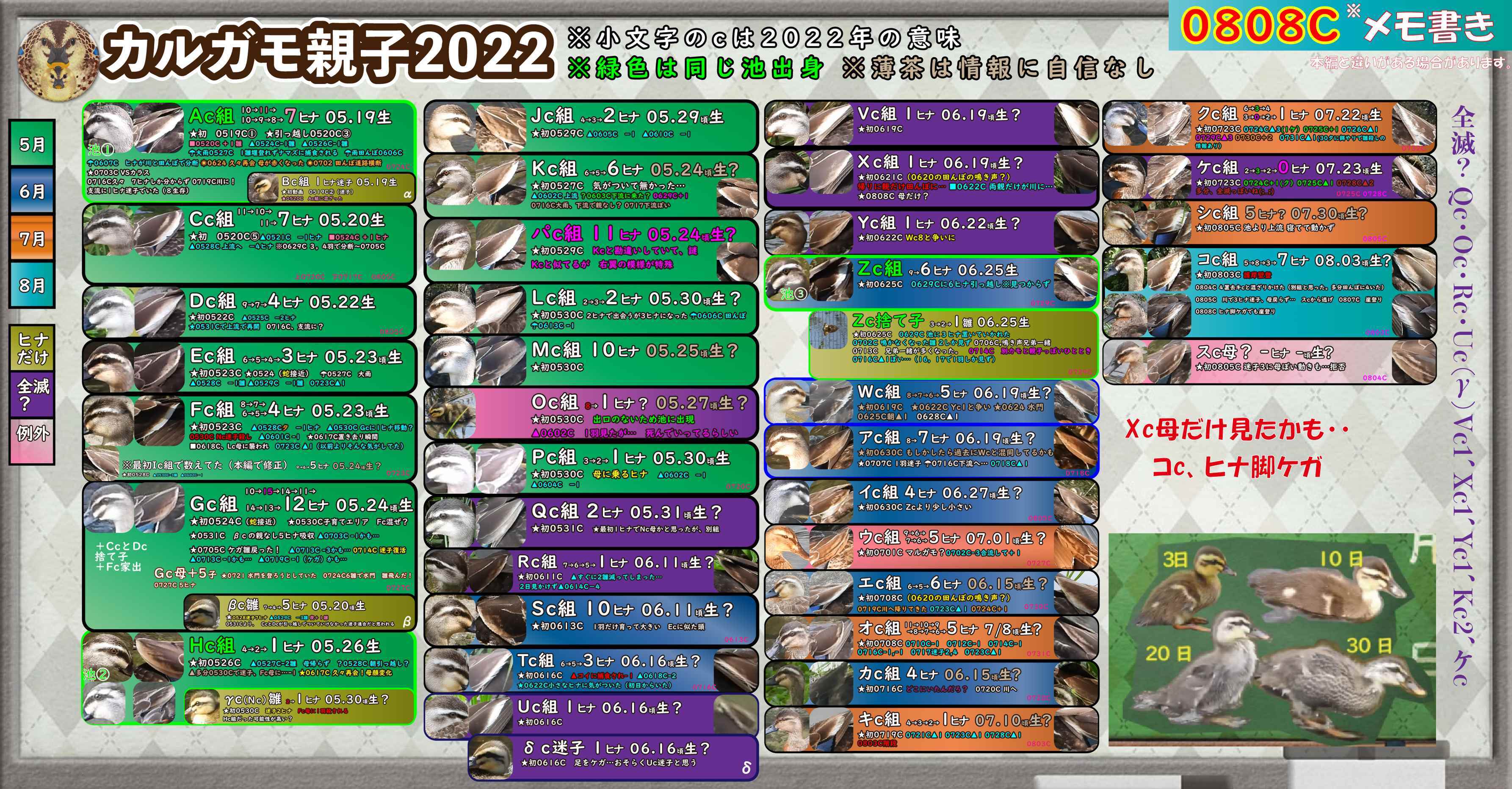 ▼まずはカルガモ親子の一覧表と、今日撮影した動画から▼