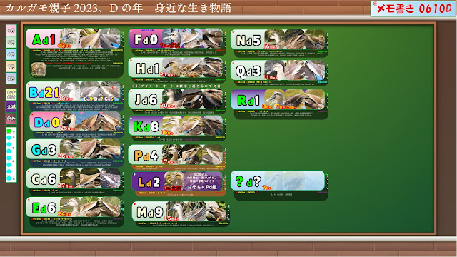 ⬆2023年カルガモ親子の一覧表(暫定)⬆※カルガモ親子2023メモ(自分用) 拡大して御覧ください↑